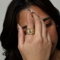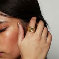 リングのサイズは、ワンサイズの14号となります。 この商品の素材は、SUS316L(サージカルステンレス)にK18PVDコーティングされているものを使用しております。